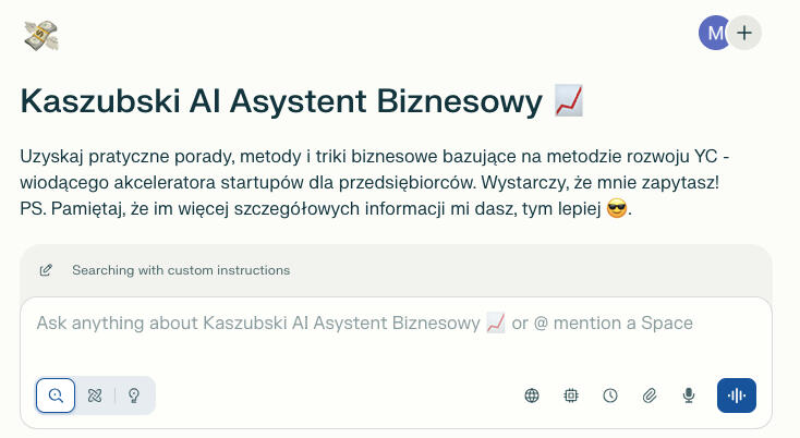 ➡️ Zewnętrznym, autorskim narzędziem, które łączy różne modele sztucznej inteligencji (Chat GPT, Claude, Perplexity). Dostajesz do niego dostęp poprzez link i od razu możesz z niego korzystać.➡️ Super intuicyjny (zero nauki technikaliów) i oparty o rozmowę – on zadaje pytania, Ty odpowiadasz jakbyś rozmawiał/a z prawdziwym asystentem.➡️ Skuteczny i oszczędzający Twój czas, dający znacznie lepsze wyniki niż Twój Chat GPT.